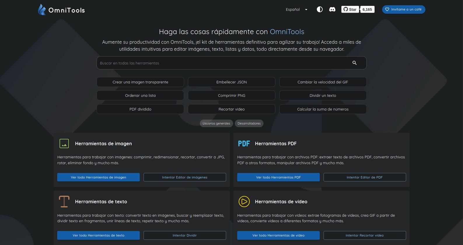 OmniTools es una aplicación web auto-hospedable que ofrece una enorme colección de herramientas útiles para tareas cotidianas, todo accesible desde tu navegador. Está diseñada para ser rápida, ligera y completamente privada: no rastrea, no muestra anuncios y no envía datos a servidores externos.